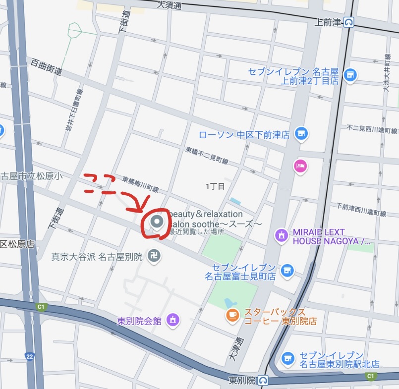 名城線・鶴舞線上前津駅7番出口より徒歩9分、名城線東別院駅4番出口より徒歩7